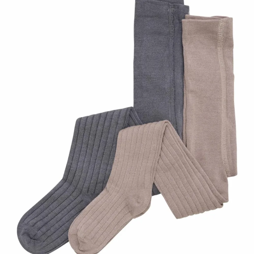 2-pak Minymo ribstrikkede strømpebukser i bambus. Pakken består af to par strømpebukser, hvor begge er ensfarvede.