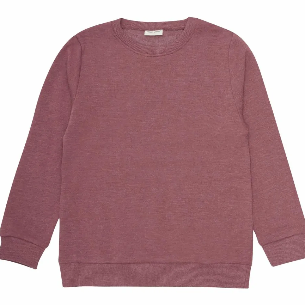 Minymo børne sweatsæt. Lækkert sweatsæt bestående af en langærmet bluse og bukser med blød børstet inderside. Sweatshirten har rund halsudskæring samt ribkant ved hals, hofte og ærmegab. Bukserne har elastik og bindebånd i taljen, to lommer samt ribkant ved talje og ankler.