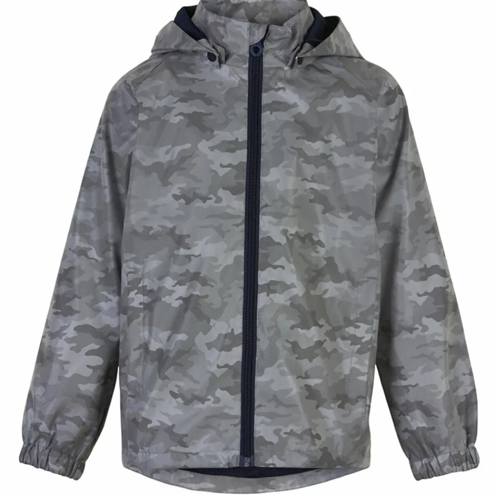 Minymo drenge jakke med refleks og all-over print. Lukkes med lynlås med en hagebeskytter. Jakken har en krave og elastik om håndleddet og aftagelig hætte.