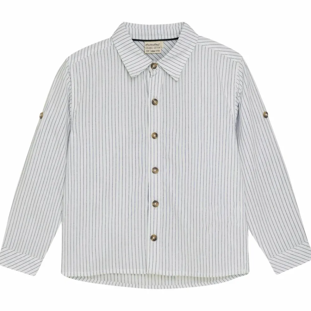 Minymo langærmet bomuldsskjorte i stribet design. Skjorten har klassisk pasform og design, og har gennemgående knaplukning på fronten.