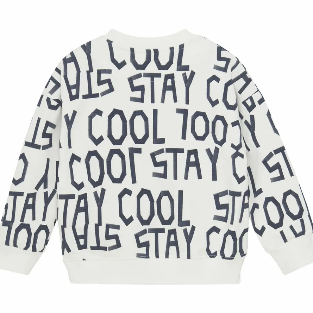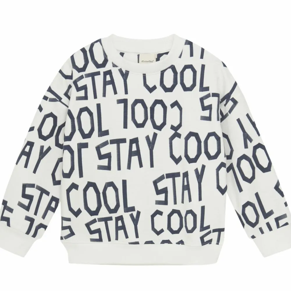 Minymo langærmet sweatshirt med all-over print. Trøjen er i bomuld og har “Stay Cool” print. Den har brede rib kanter langs alle åbninger. I størrelse 86 og 92 lukkes trøjen med skjulte trykknapper.