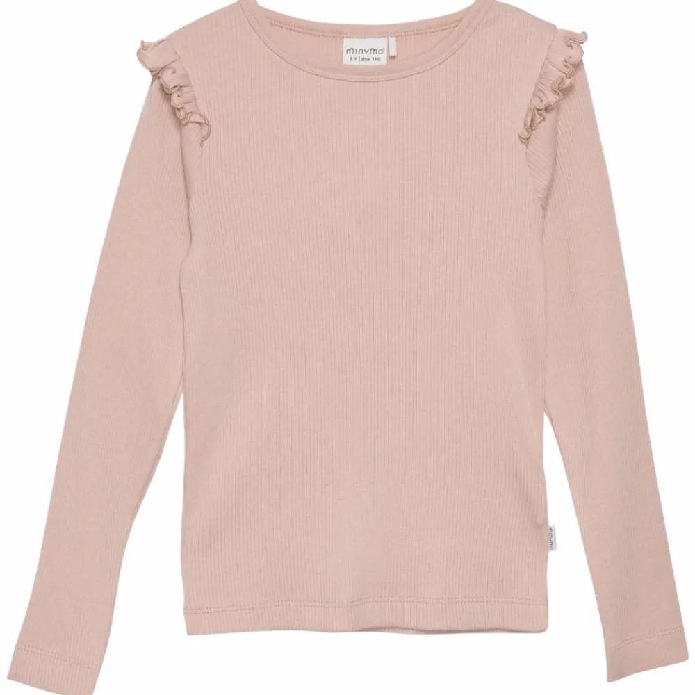 Minymo langærmet bluse med flæser på skulderne. Blusen er ensfarvet og i rib materiale.