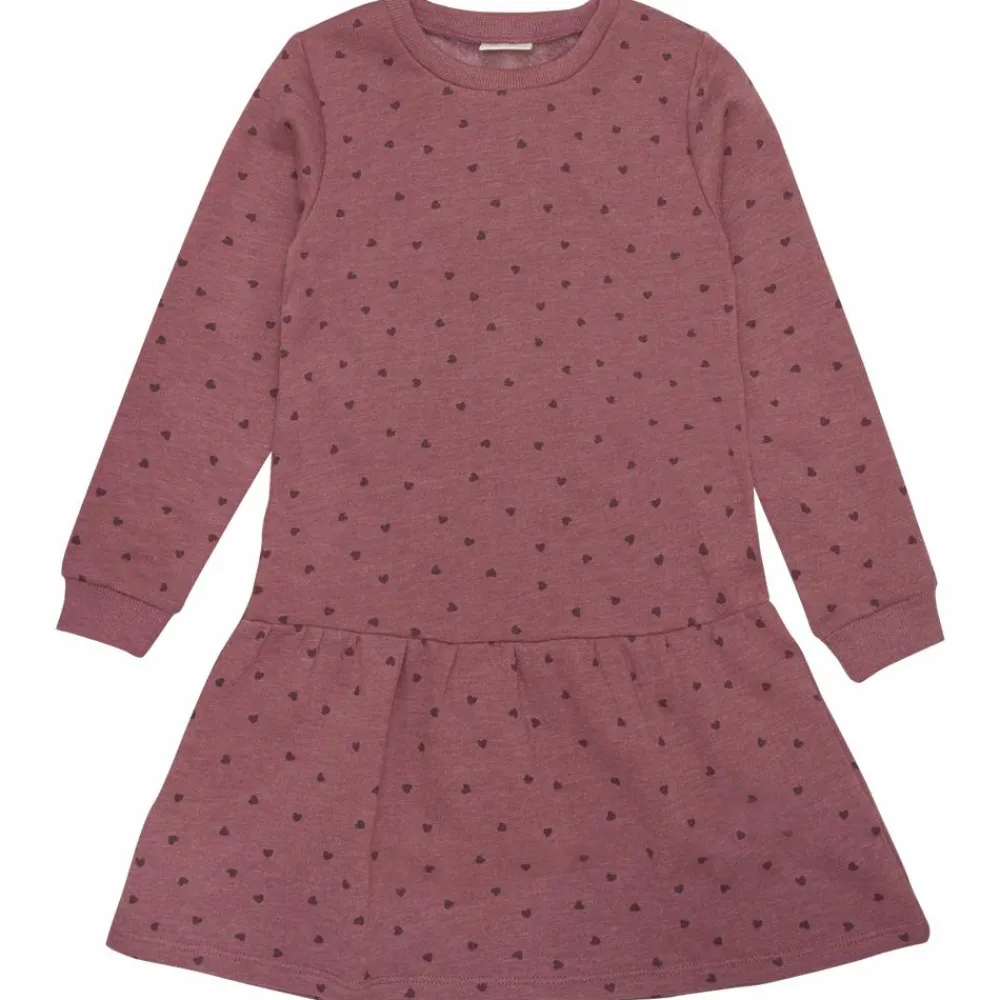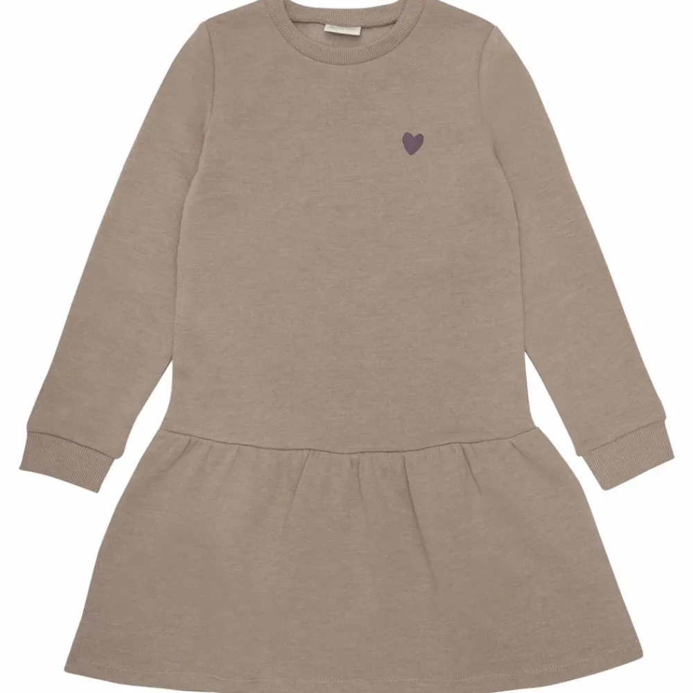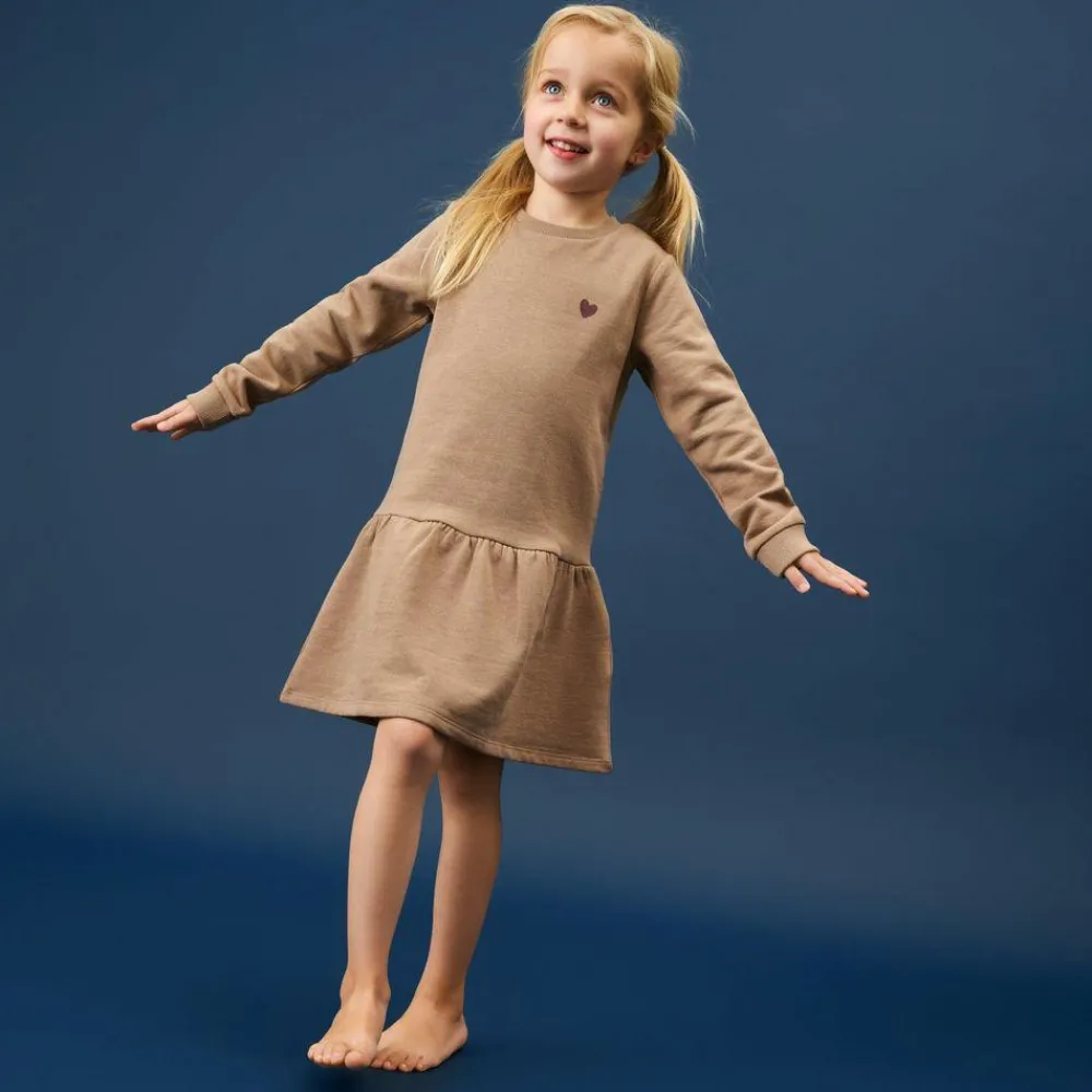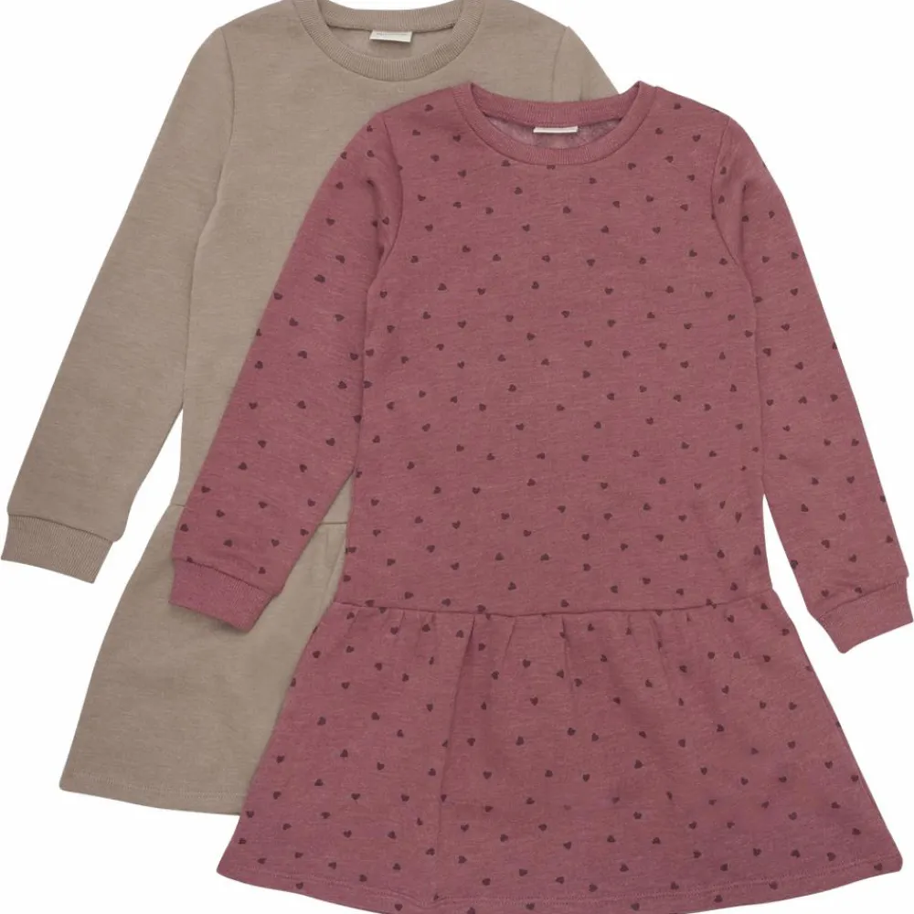 Sød sweatkjole i en pakke med to styk. Kjolen har rund halsudskæring, indsnit i taljen, lange ærmer samt ribkant ved hals og ærmegab.