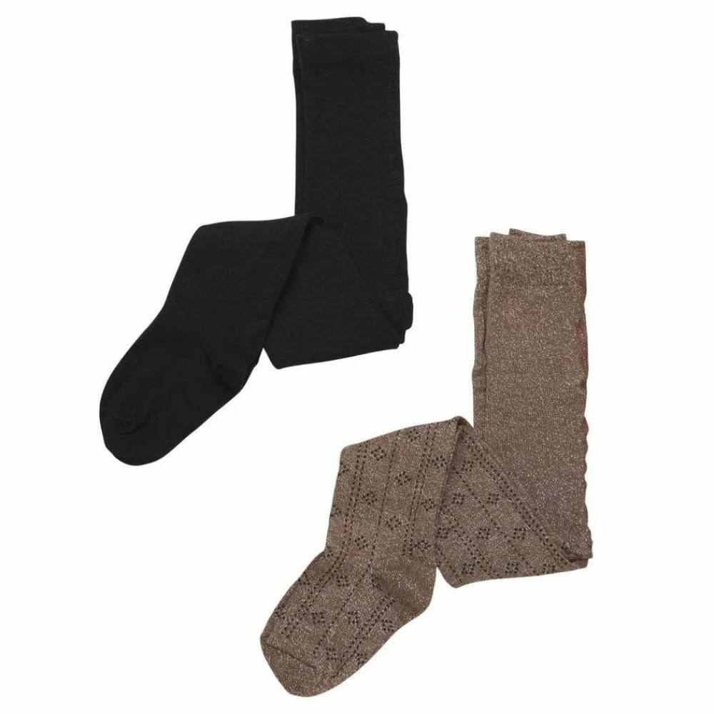 Minymo pige strømpebukser 2-pak. Super fine strømpebukser med glimmerdetaljer og fine syninger. I taljen har strømpebukserne elastikkant så de ikke kravler ned. Taljen er høj, som gør at strømpebukserne sidder godt over hofterne.