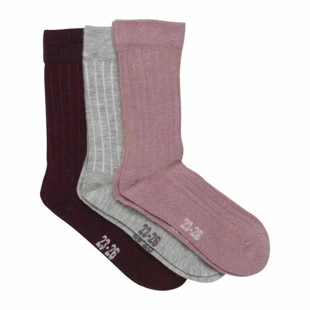 3-pak bestående af uldstrømper, som går op over anklen i ribstrikket look. Strømperne er uden syninger henover tæerne, også kaldet “soft toe”.