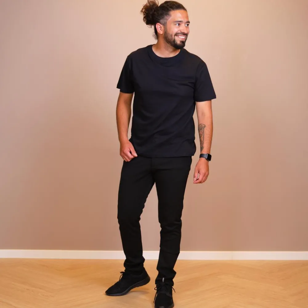Nero herre performance bukser med stræk, bæltestropper, to skrå lommer samt to baglommer. Bukserne har knap- og lynlåslukning.