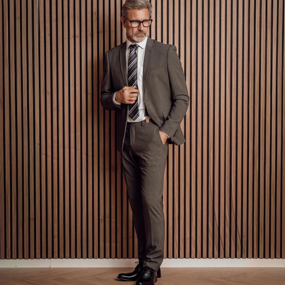 NERO slim fit klassiske habitbukser med stretch. Bukserne har 2 skrålommer, 2 baglommer med knap, bæltestropper samt knap- og lynlåslukning.