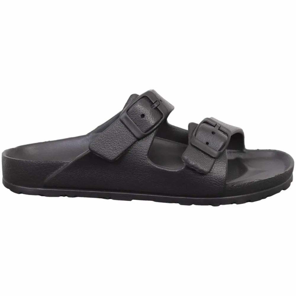 Anyway børne sandaler i ensfarvet sort. Sandalerne har to stropper over foden, som lukkes med en spændelukning.