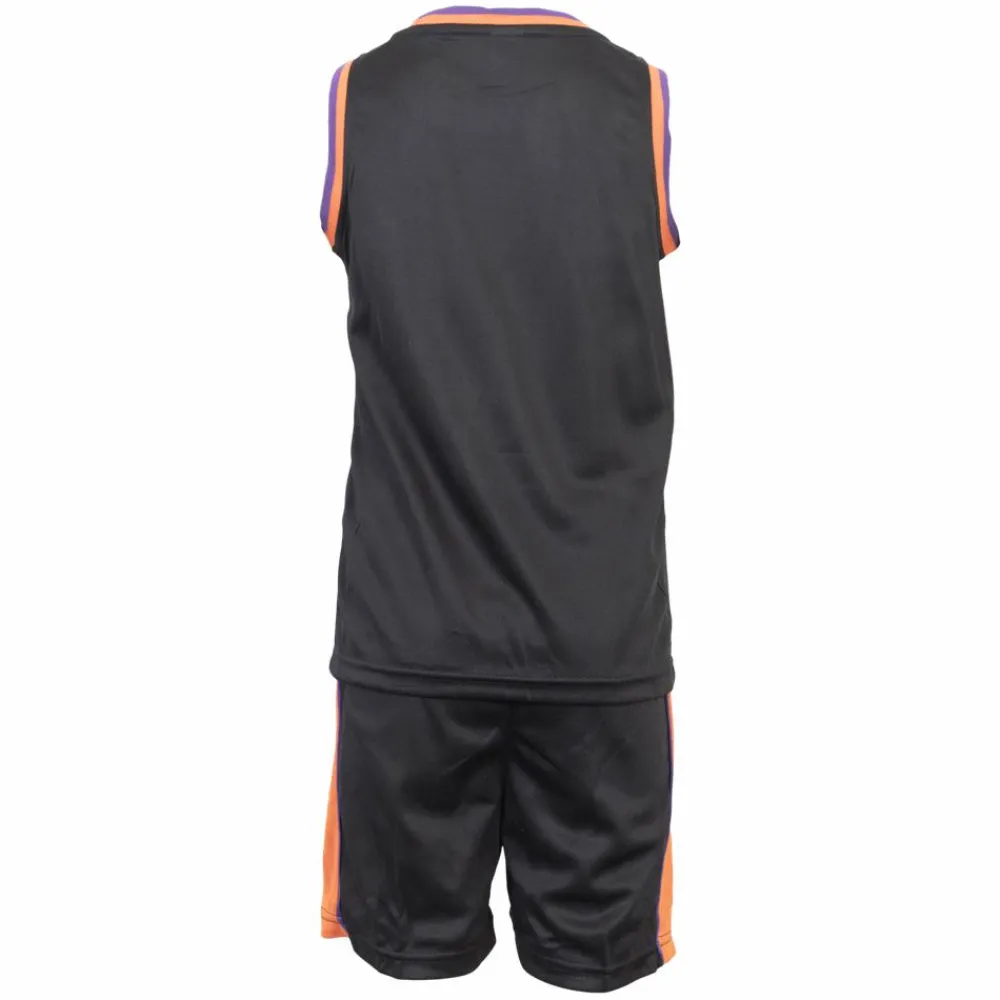 Basketball unisex shorts sæt til børn. Det smarte træningssæt med shorts og t-shirt er fremstillet i blødt og åndbart materiale. Sportstøjet er hurtigtørrende og kan bruges til både sport og fritid. Sættet består af t-shirt med print og shorts med elastik i taljen.