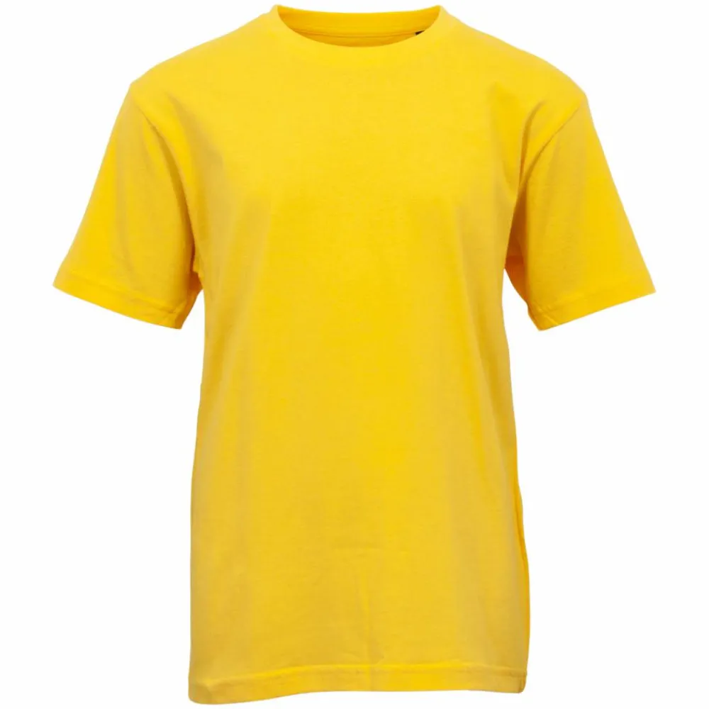Behagelig og blød basis t-shirt til piger og drenge. T-shirten har en rund halsudskæring med ribkant.