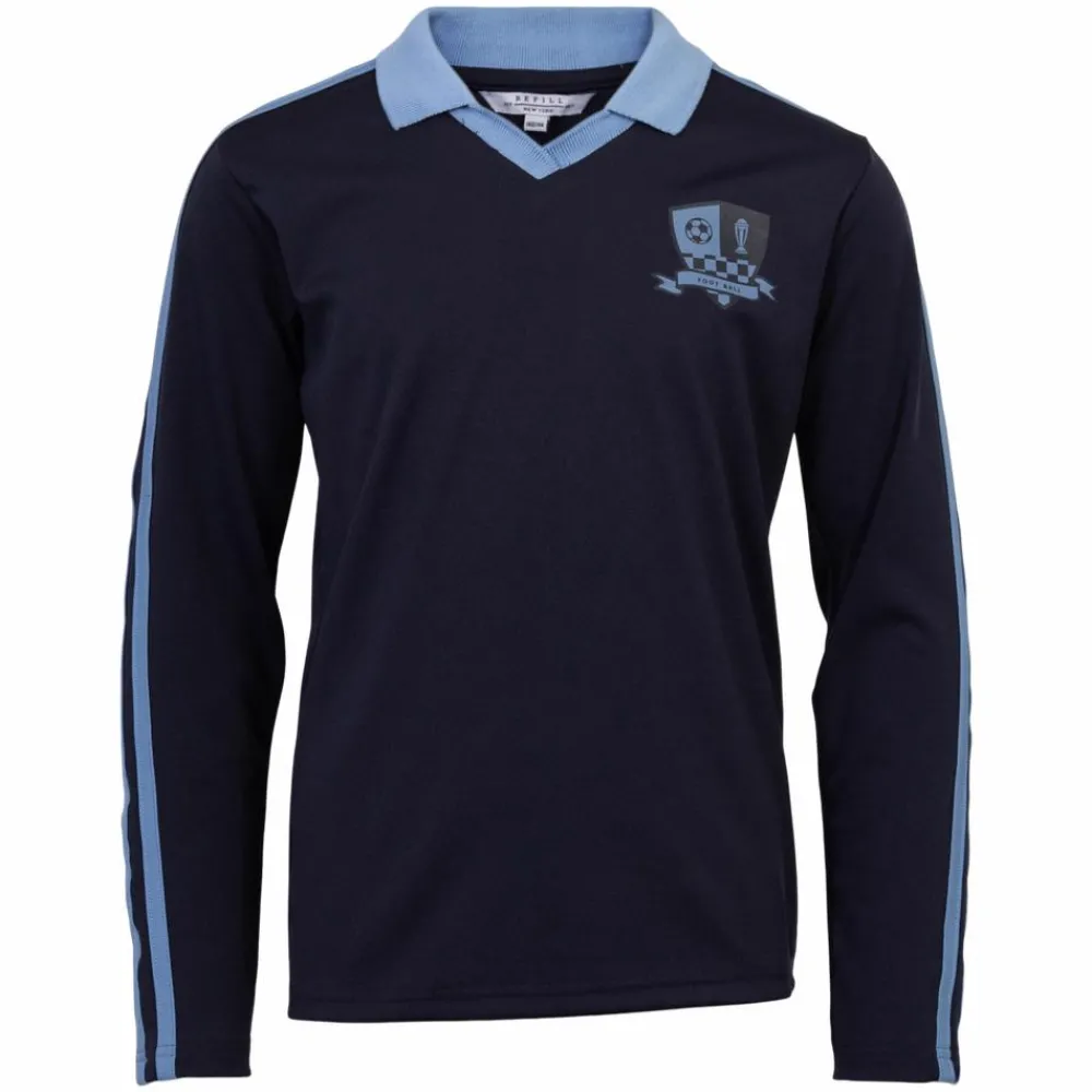 Smart polo trøje med et lille print på fronten. Trøjen har en løs og afslappet pasform som sikrer komfort og bevægelighed. Den langærmede trøje med v-udskæring er designet med den klassiske polokrave. Blusen har kontrastfarvede striber på ærmerne og trøjen har et smart og sporty look.