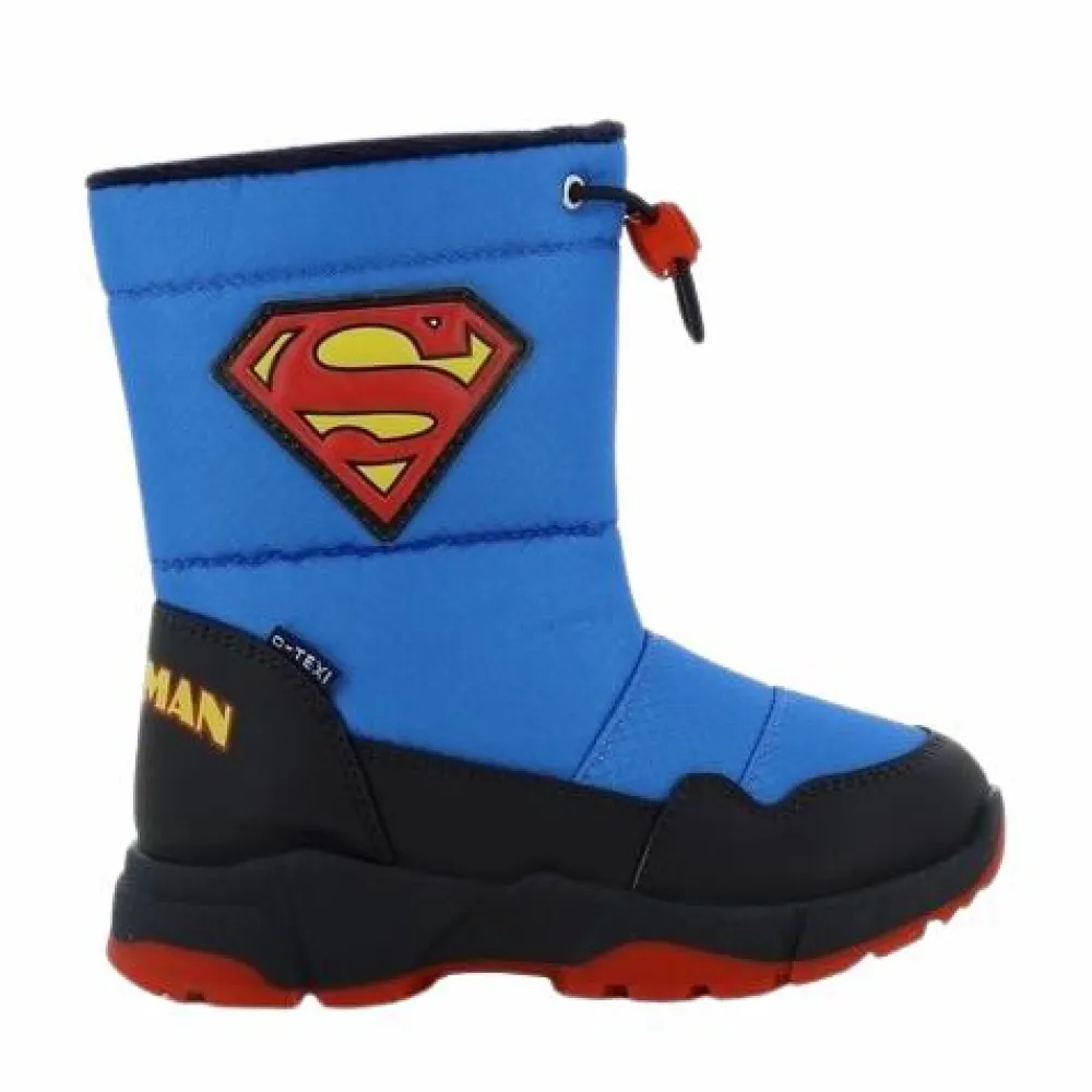 Superman vinterstøvler til børn. Lækker foret vinterstøvle som holder fødderne varme og tørre. Støvlerne snøres let ind med en lille lås og har lynlås på indersiden, som gør det nemt at få dem af og på. De har en solid og god skridsikker ydersål, så barnet står fast på glatte overflader.