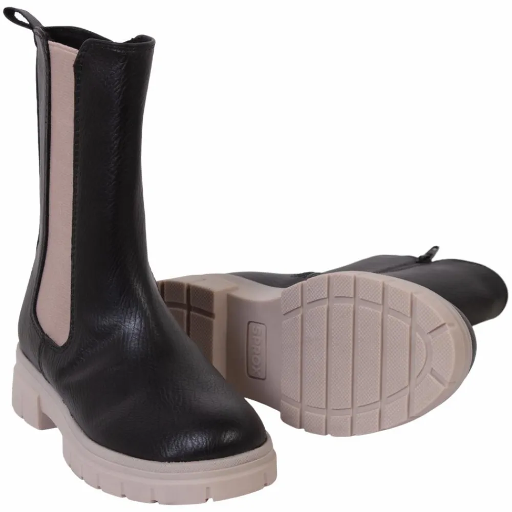 Støvler med lynlås på indersiden, og elastik på ydersiden. Lysbrun gummisål.