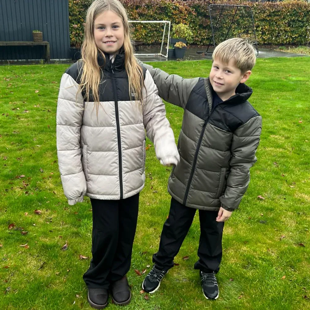 Smart dynejakke til børn fra Nordic Project 18. Denne vatterede vinterjakke er designet i et let materiale, som samtidig vil holde dit barn varm i de kolde vintermåneder. Jakken har en høj krave, en gennemgående lynlås og to praktiske sidelommer med lynlås samt to rumlige inderlommer. For bedre pasform og vindbeskyttelse har jakken skjulte justerbare elastiksnøre i livet og justerbar elastik ved ærmeåbning.