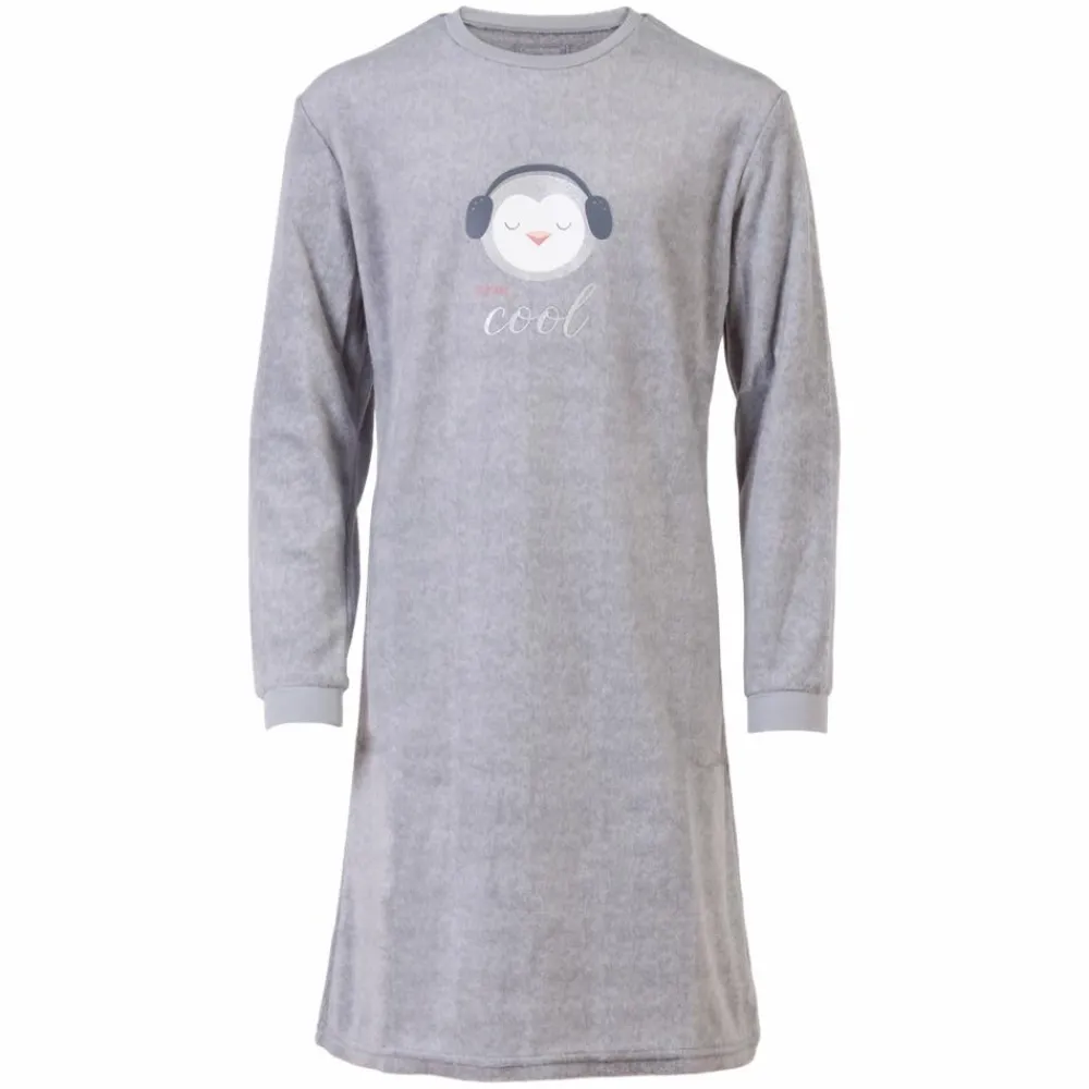 Outfitter natkjole i blødt materiale. Natkjolen er med lange ærmer, rund halsudskæring samt print på brystet og ribkant ved halsudskæring og i ærmerne.