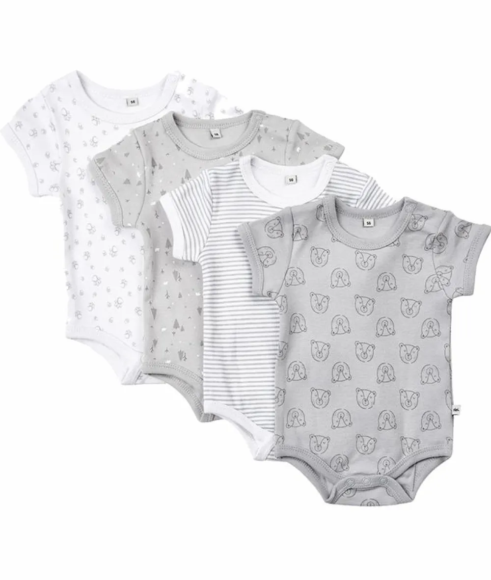 Pippi baby kortærmet body 4-pak. Sød kortærmet body med print og med trykknapper imellem benene. Denne bodystocking har trykknap ved halsåbningen for nem af – og påklædning, samt 3 trykknapper ved skridtet, så det er let at skifte ble.