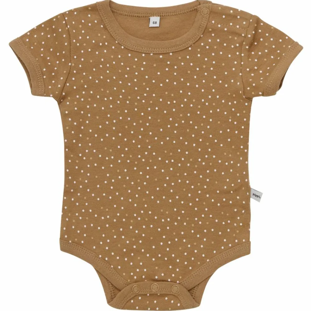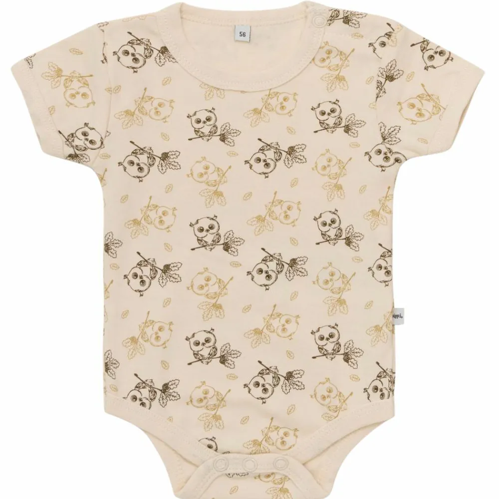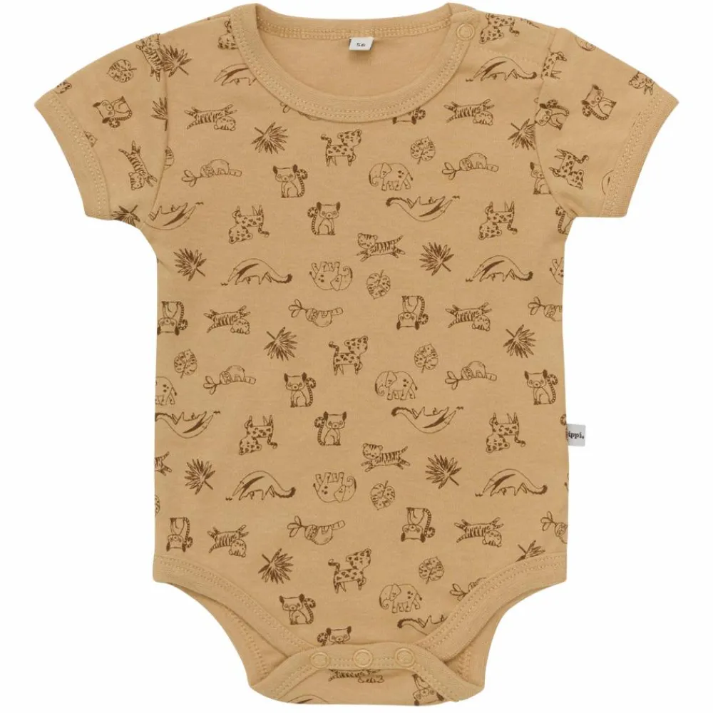 Pippi baby kortærmet body 4-pak. Sød kortærmet body med print og med trykknapper imellem benene. Denne bodystocking har trykknap ved halsåbningen for nem af – og påklædning, samt 3 trykknapper ved skridtet, så det er let at skifte ble.