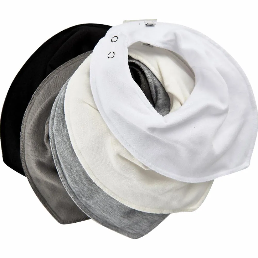 Pippi savlesmække 5-pak spidse savlesmække i de farver du ser på billedet. Hver savlesmæk har to trykknapper i nakken, så der er to størrelser at vælge mellem. Savlesmækkene er ensfarvede og formet lidt som en bandana. Savlesmækkene er dobbeltlags og lavet af en super lækker kvalitet med bl.a. 65% økologisk bomuld.