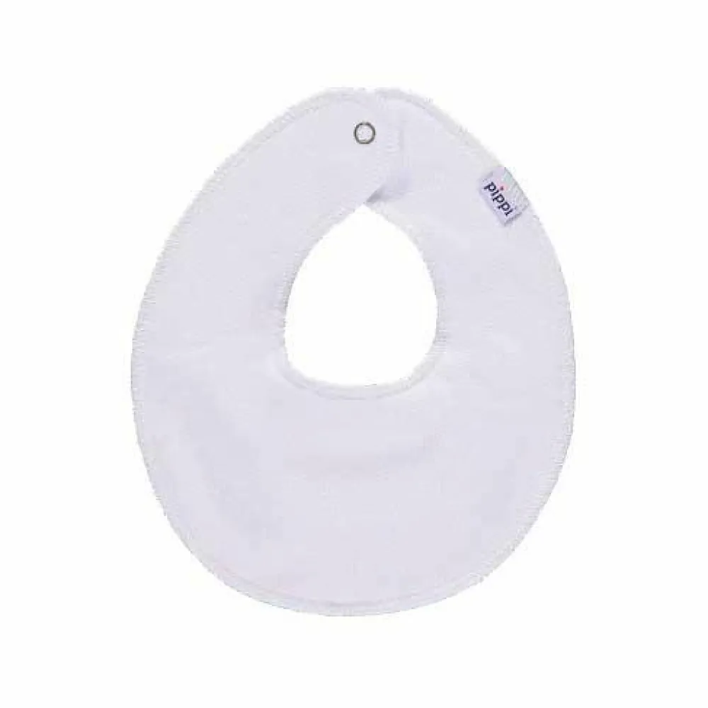 Pippi basic savlesmæk i økologisk bomuld. Flot rund hagesmæk med knaplukning i nakken.
