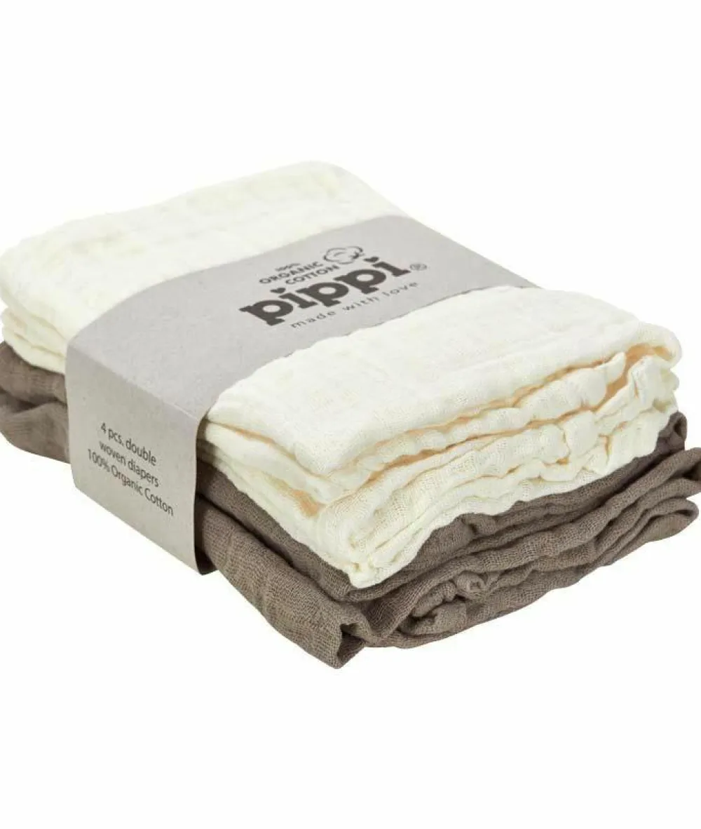 Pippi stofble 4-pak i økologisk bomuld. Stofbleer i et meget blødt og behageligt materiale. Bleerne måler: 65×65 cm. En stofble er uundværlig i enhver børnefamilie og i mange situationer. Brug den som underlag på puslebordet, som aftørringsklud eller som hagesmæk. Pakken med de flotte stofbleer er også en fin gaveidé som en barselsgave.
