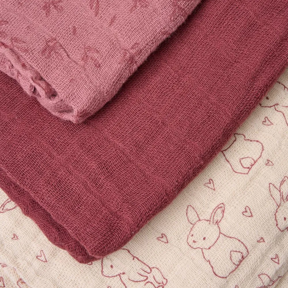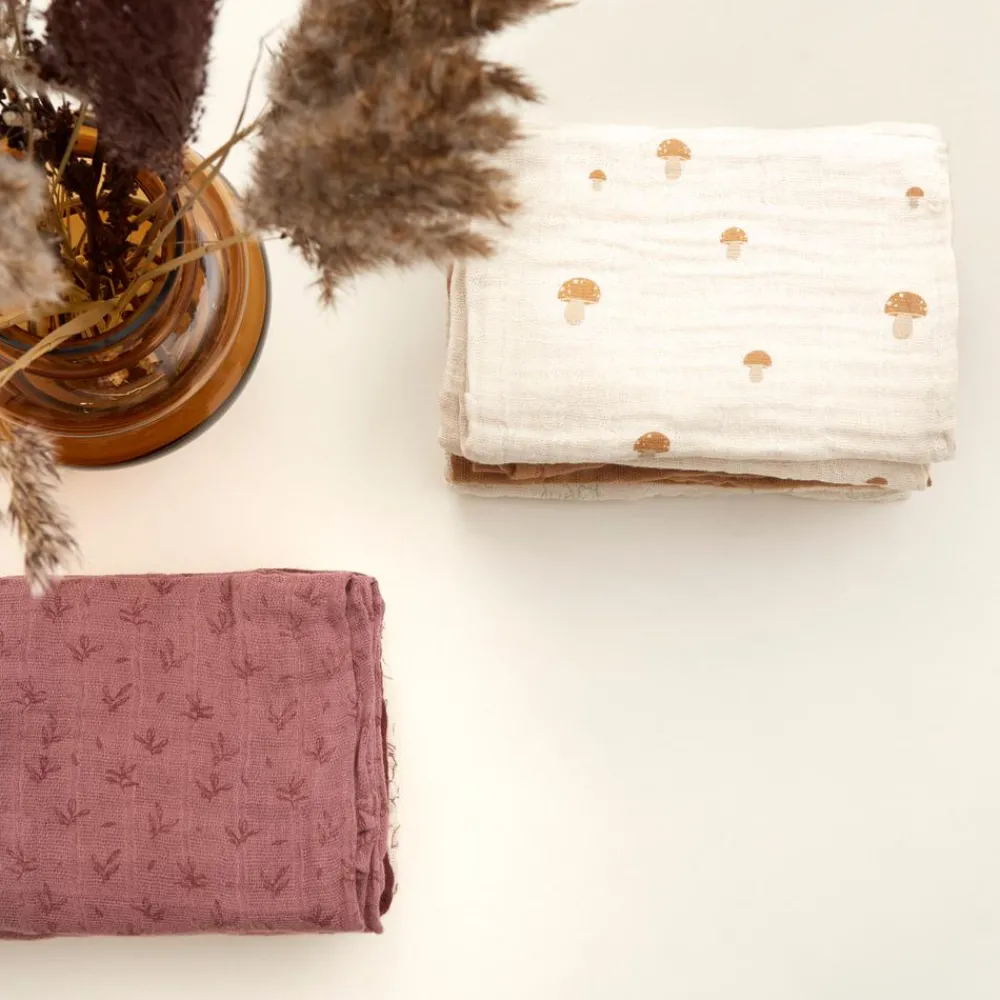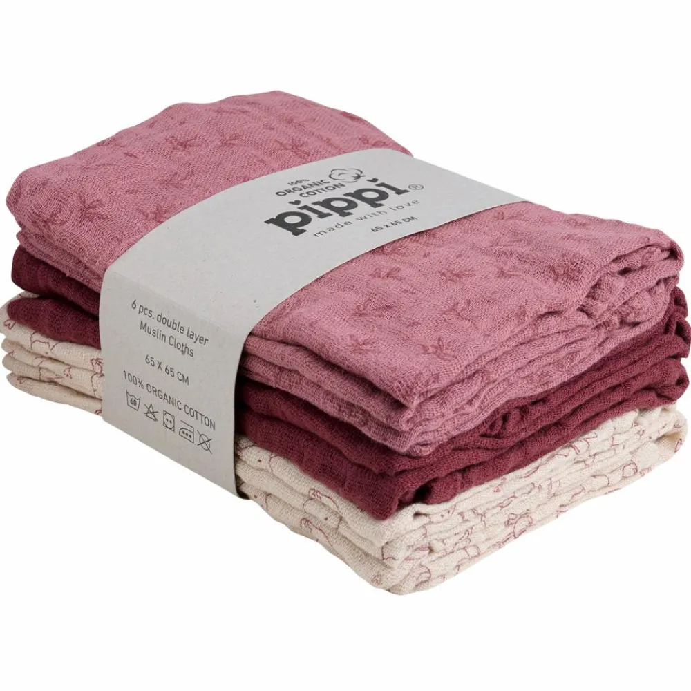 6-pak bestående af stofbleer lavet af økologisk bomuld. Pakken består af både ensfarvede stofbleer og nogle med all-over-print.