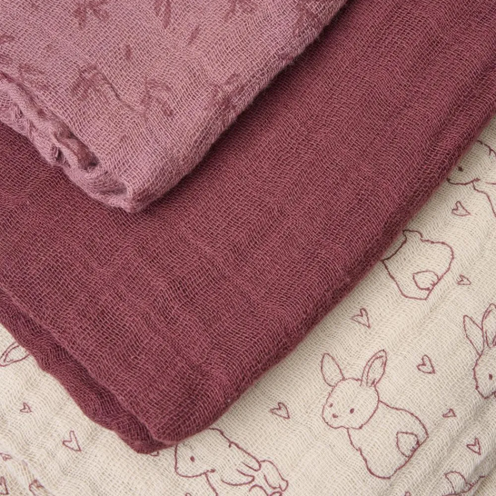 6-pak bestående af stofbleer lavet af økologisk bomuld. Pakken består af både ensfarvede stofbleer og nogle med all-over-print.