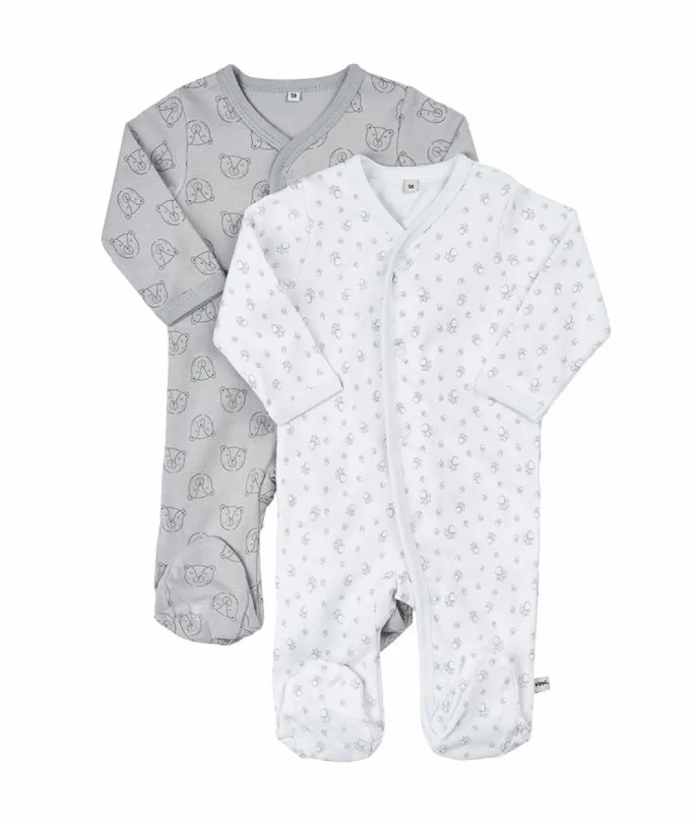 Pippi baby natdragt 2-pak. Langærmet heldragt i et sødt print med fødder og gennemgående knappelukning.