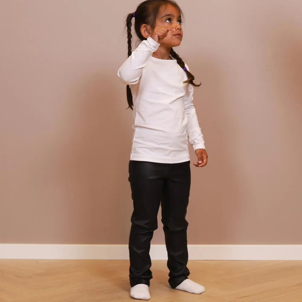 Queenz Costabrava pige coated jeggings. Trendy coated jeggings med masser af stretch og elastik i linningen. Bukserne har to baglommer samt indvendig justerbar talje.