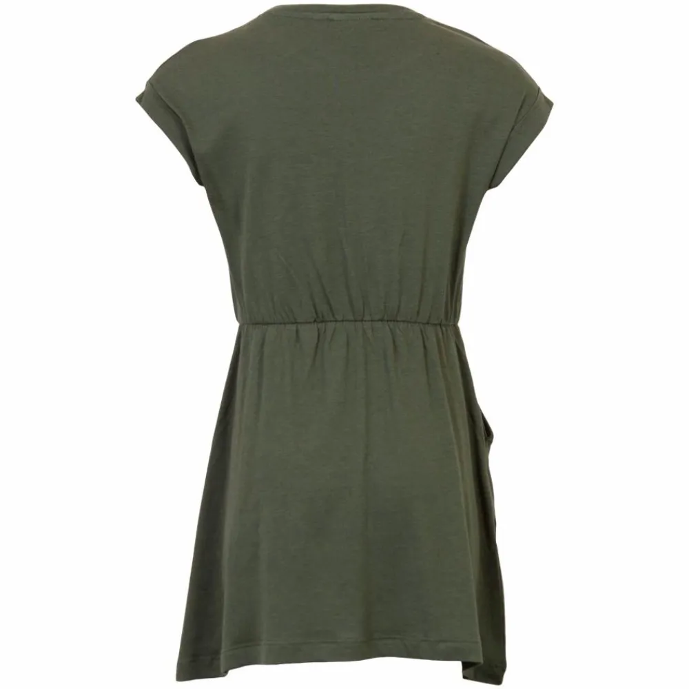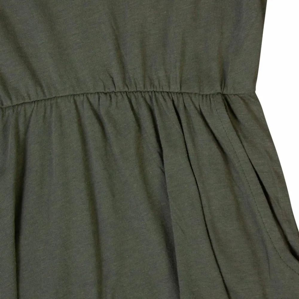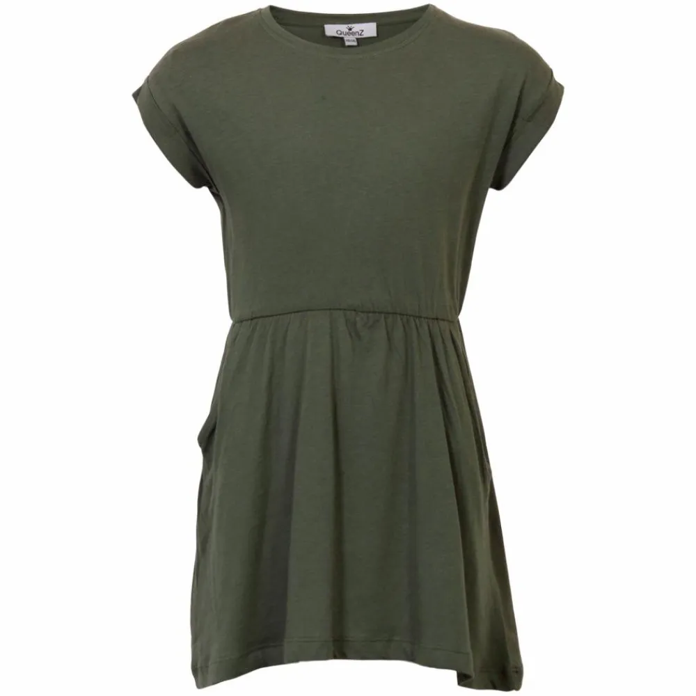Little Queenz Nima pige kjole. Lækker kortærmet kjole med elastik i taljen, to lommer samt rund hals udskæring. Kjolen er i en lækker blød kvalitet.