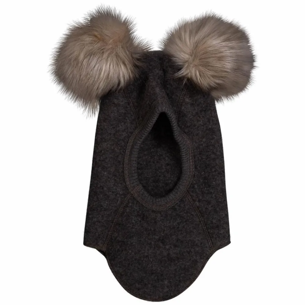 Soft Gallery elefanthue med pom pom ører. Huen er i merinould og er blød, temperaturregulerende og naturligt antibakteriel.