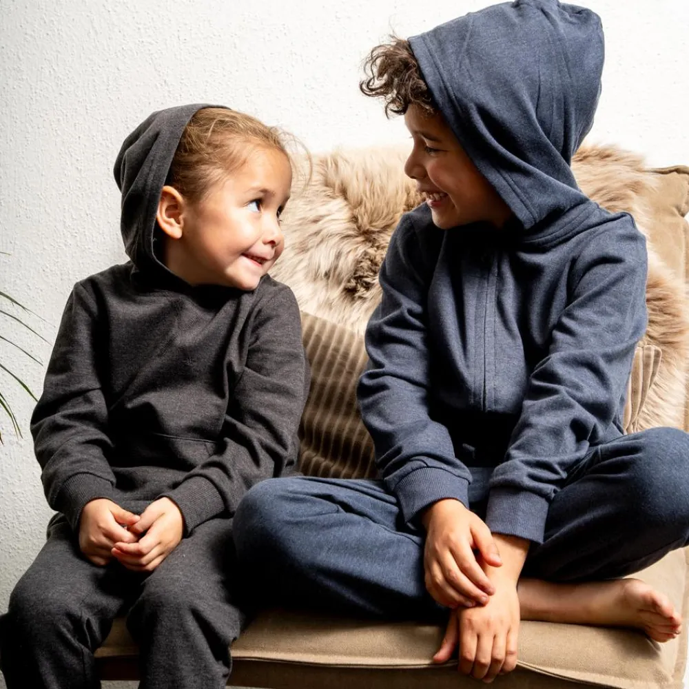 Steenholt Kids Atlas hættetrøje. Flot hættetrøje med kængurulomme samt ribkant ved hoften og ærmekanten.