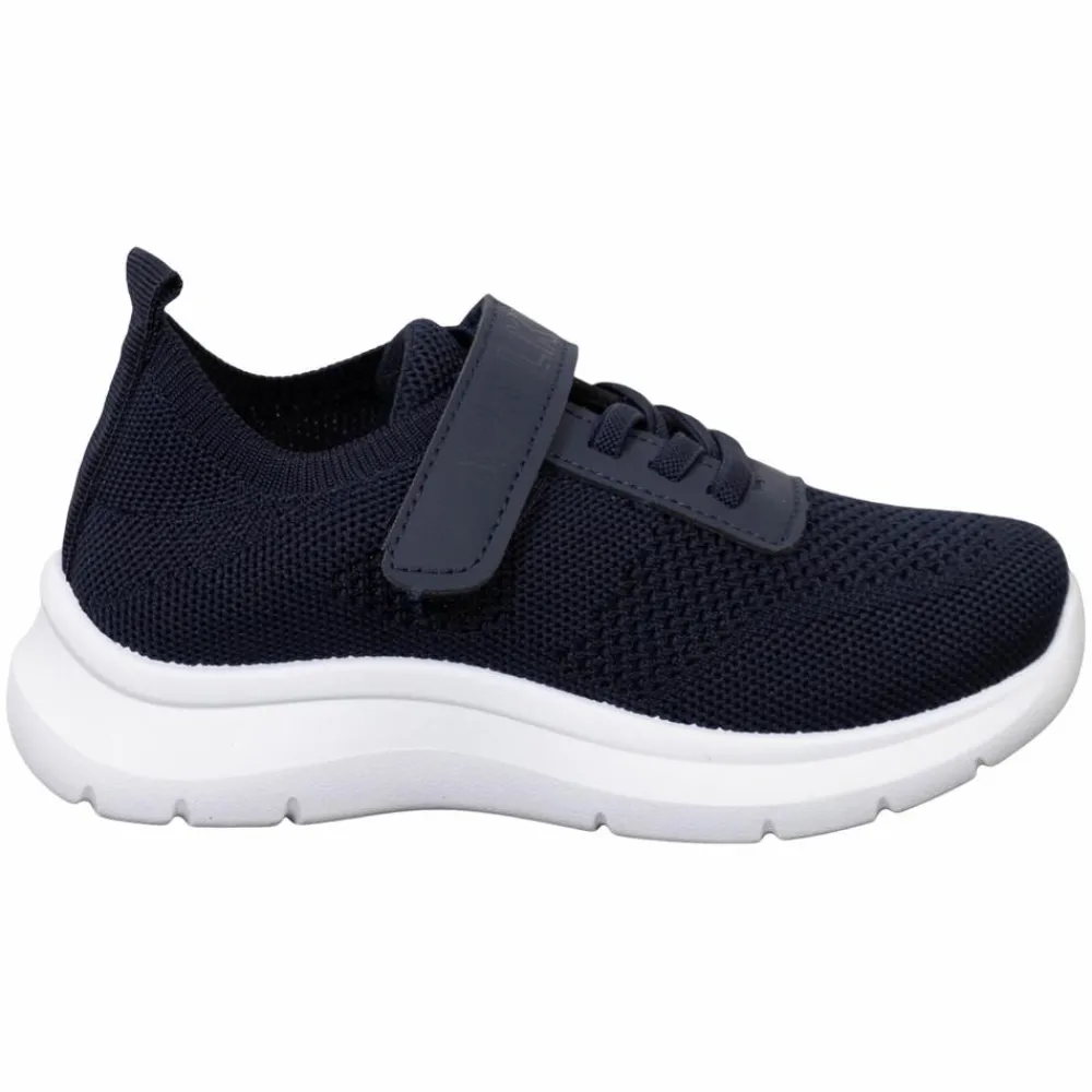 Walkway Isamu børne sneakers med velcro- og elastiksnøre. Skoen er let og fleksibel, og så er den fremstillet i åndbart materiale, som former sig om foden.