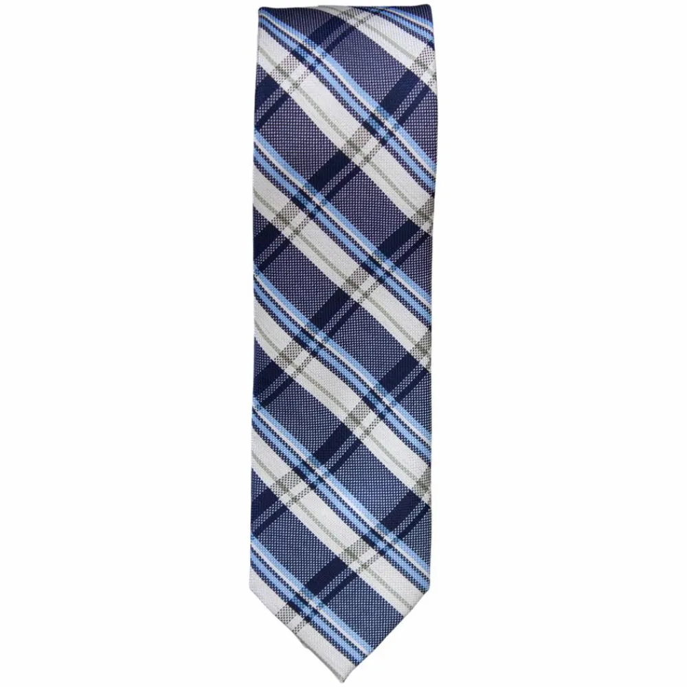 Klassisk slips i blå med hvidt og blåt mønster,