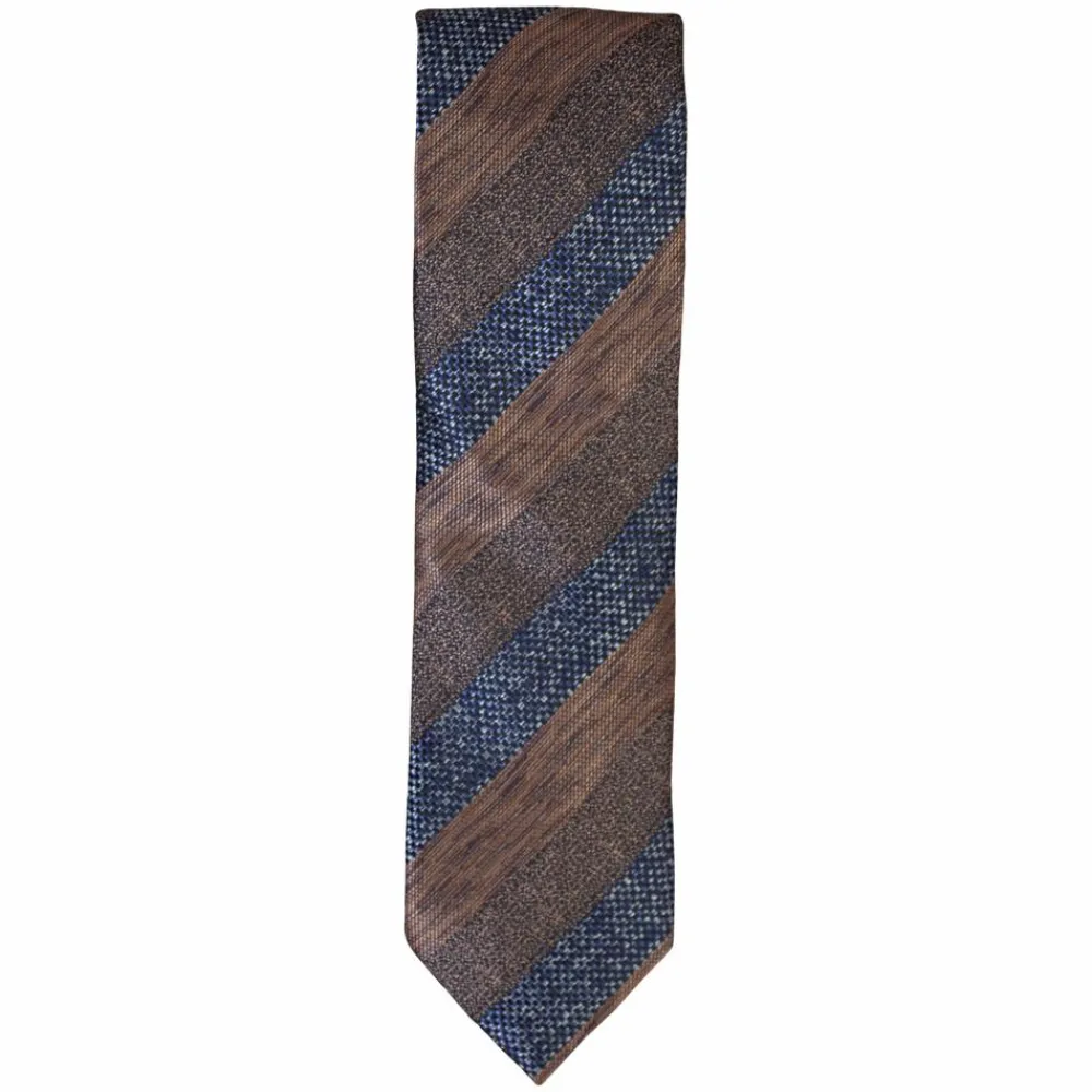 Carnét slips. Klassisk slips i blå med brune striber. Bredde: 7 cm. Totallængde: 149 cm.