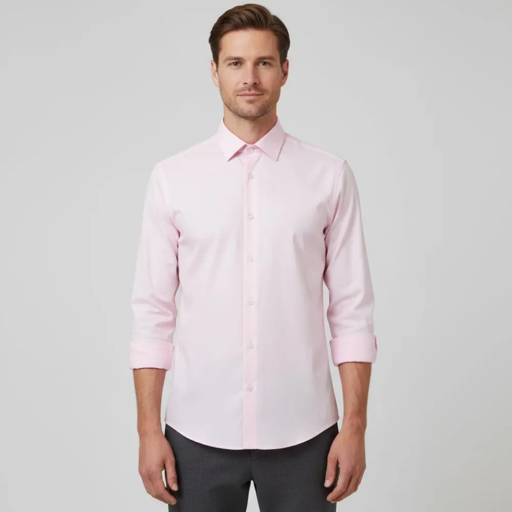 Denne skjorte i den dæmpede nuance pink tulle giver et friskt pust uden at larme. Den rene front med tone-i-tone knapper og en praktisk brystlomme holder udtrykket enkelt, så den er nem at bruge på kontoret såvel som til familiesammenkomster. Se flere skjorter.