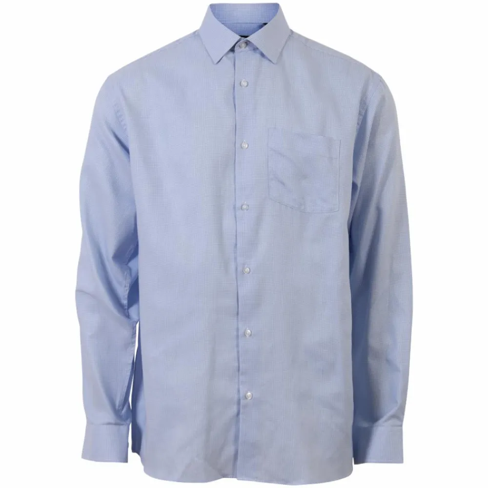 Carnet Dobby plus size herre skjorte. Skjorten har gennemgående knappelukning, samt knapper i bunden af ærmerne. Skjorten har krave om halsen, samt en brystlomme på venstre bryst.
