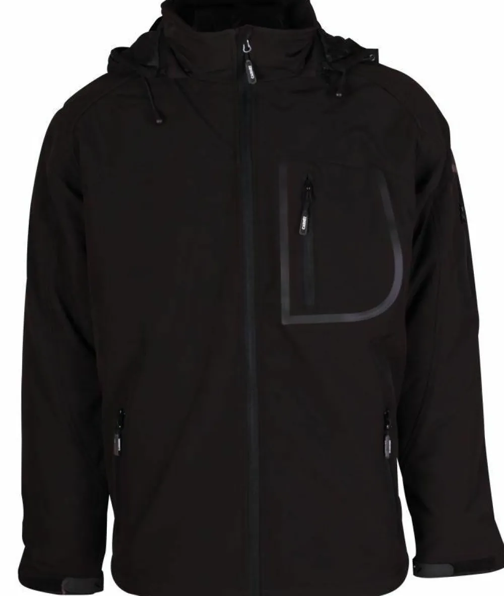 Carnét Oscar herre vinter softshell jakke. Herrejakke med fire udvendige lommer, heraf en lomme på bryst og en på overarm. To indvendige lommer samt aftagelig hætte. Jakke kan strammes til i talje og hætte, yderligere kan ærmerne strammes til med velcro.