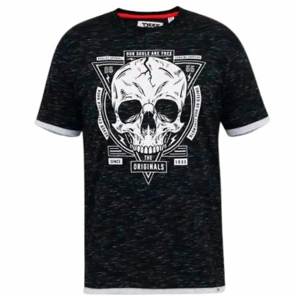 D5555 Plus size herre T-shirt. T-shirten har et flot print på forsiden og rund hals og ribkant i halsåbningen.