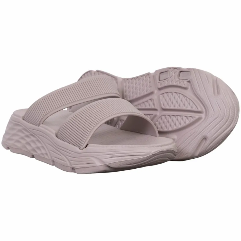 Anyway soft sandals i ensfarvet lilla. Sandalerne har to brede stropper over foden. Sandalerne har en tyk sål, som sikrer en tilstrækkelig stødabsorbering. Sandalerne har en mønstret ydersål, som giver et solidt greb og stabilitet på forskellige underlag.