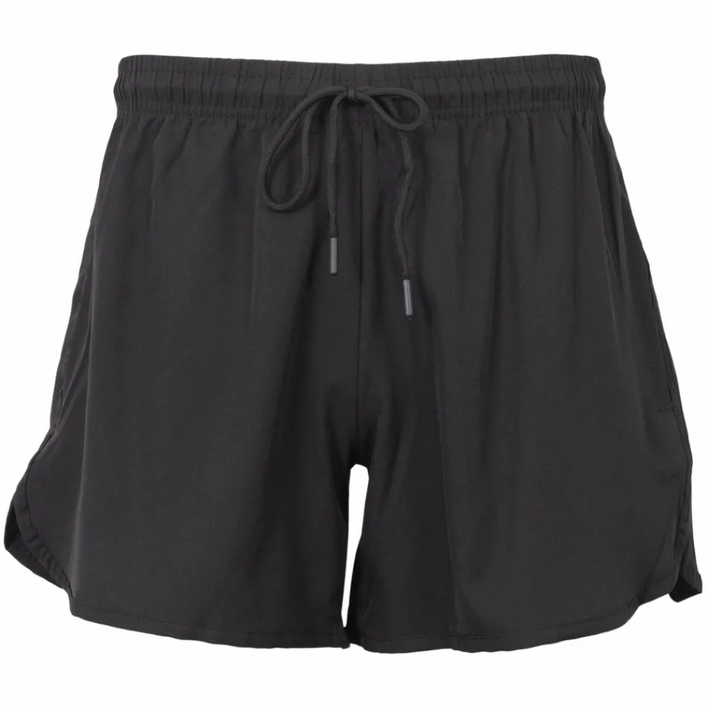 Smarte dame shorts med sidelommer og elastik og bindebånd i taljen. De behagelige og lette shorts er hurtigtørrende og meget behagelige at have på uanset om det er til træning eller på en varm sommerdag på stranden. Dameshortsene har et lille slids i begge sider.