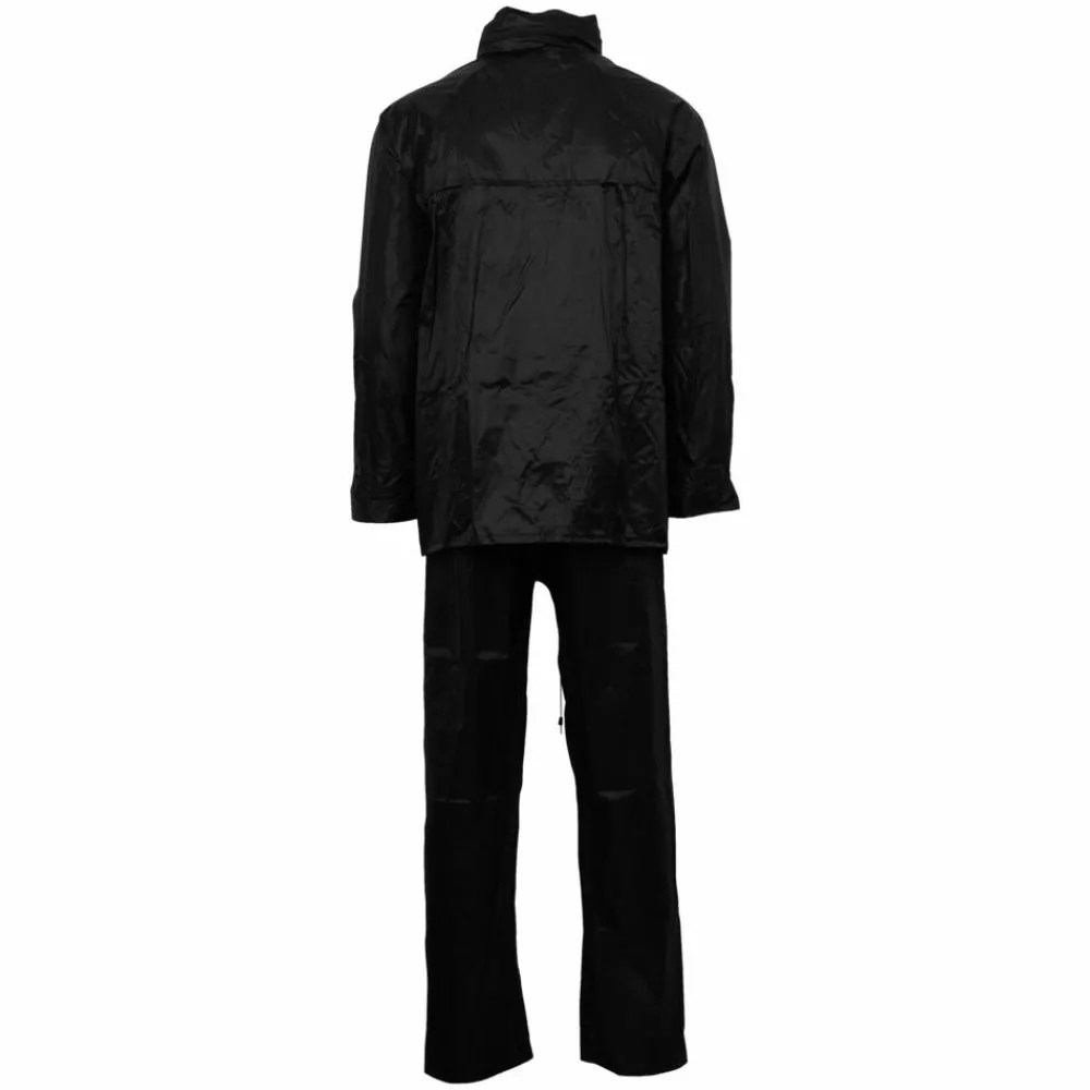 Anyway unisex regnsæt. Regnsæt bestående af jakke og bukser. Jakken har hætte med snøre som er skjult i kraven, to udvendige lommer samt snøre i bunden. Bukserne har elastik i taljen, samt trykknapjustering ved anklerne, og to sidelommer med åbning ind til inderste lag.
