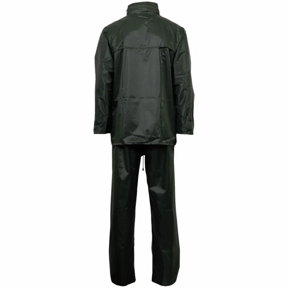 Anyway unisex regnsæt. Regnsæt bestående af jakke og bukser. Jakken har hætte med snøre som er skjult i kraven, to udvendige lommer samt snøre i bunden. Bukserne har elastik i taljen, samt trykknapjustering ved anklerne, og to sidelommer med åbning ind til inderste lag.