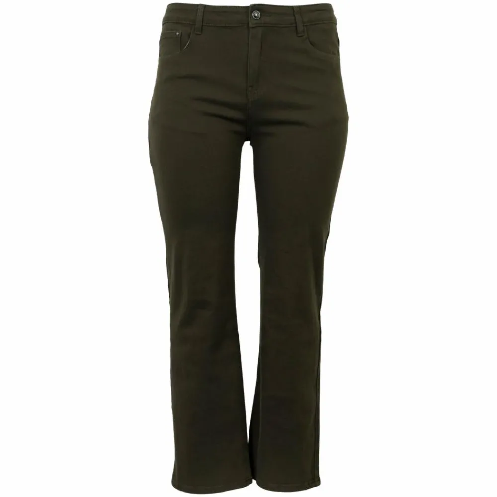 Disse jeans i dyb armygrøn giver et roligt udtryk, der passer til alt fra hverdage til pænere anledninger. Den lige, let afslappede benvidde og en behagelig mellemhøj talje skaber en pæn silhuet, mens stoffets stræk følger dine bevægelser. Style med blød strik og cardigans eller en enkel t-shirts og toppe for et sikkert hverdagslook.