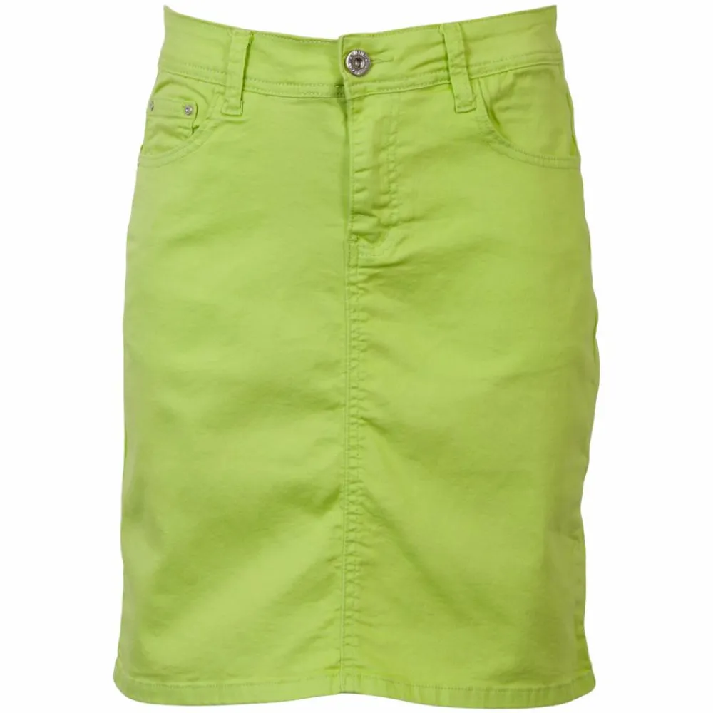 Neon grøn dame nederdel bestående af 5 lommer, bæltestropper samt lynlås- og knaplukning.