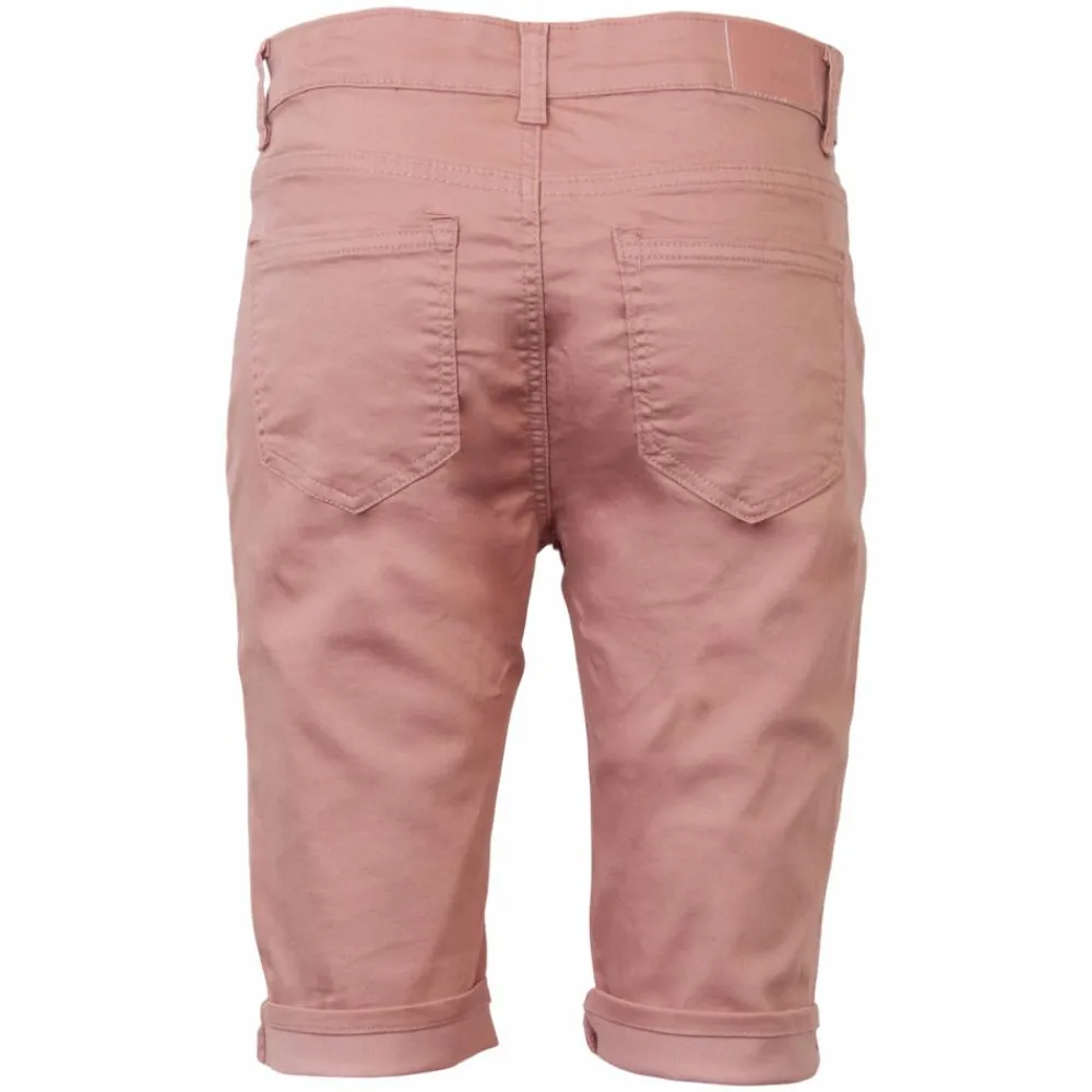 BS Jeans dame shorts. De behagelige strækbare shorts har knap- og lynlåslukning, bæltestropper, samt 3 lommer foran og 2 baglommer.