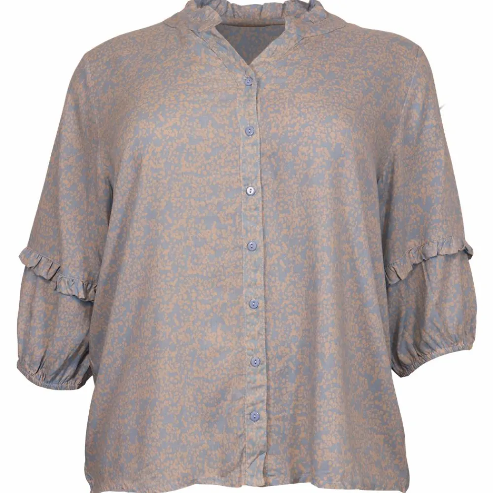 Cassiopeia Palomi plus size dame skjorte. Smart skjorte til kvinder, med flot flæse detaljer på ærmerne. Modellen har flot all-over print samt gennemgående knappelukning. Skjorten har elastik i ærmerne, som gør den behagelig at have på.