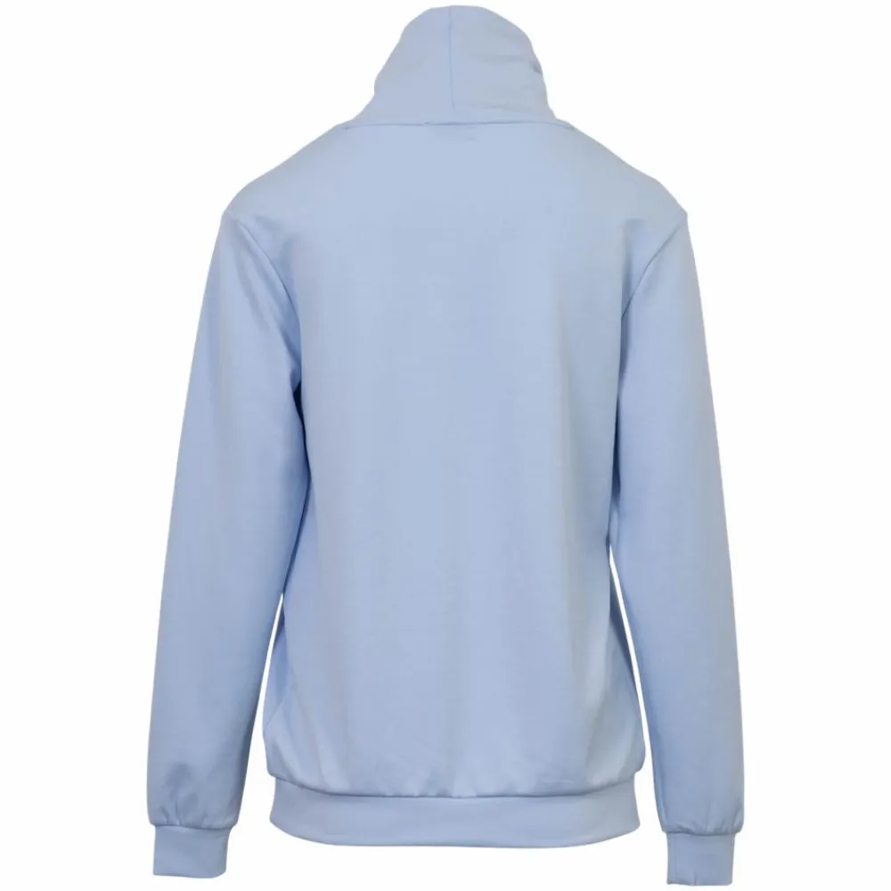 En lyseblå sweatshirt til dame, der giver et roligt udtryk og behagelig varme. Den høje krave med justerbar snøre indrammer halsen let, mens ribkanter holder formen. Normal pasform gør den nem at bruge over en top eller under en jakke, så dagen glider fra morgenrutiner til afslapning. Se flere sweatshirts.