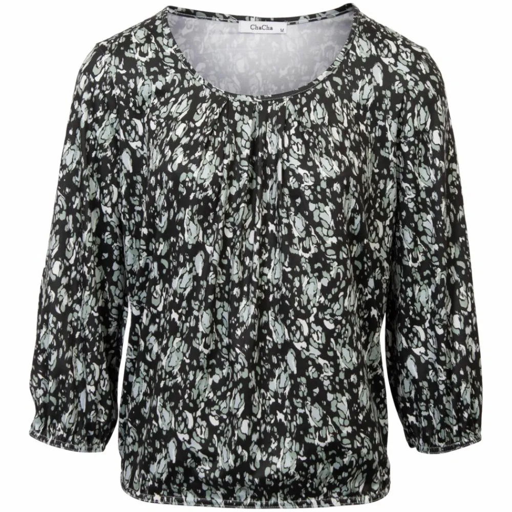 Cha Cha dame t-shirt L/S med all-over print. Flot langærmet bluse med rund hals. Blusen har en smal elastik ved håndled og talje.