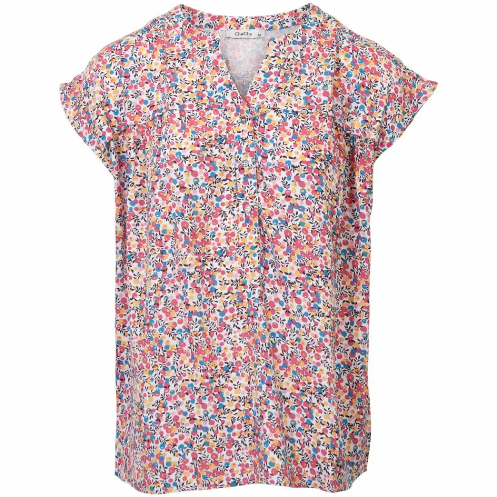 Cha Cha dame top. Smart dame top til kvinder, med knappelukning ved brystet og v-halsudskæring.