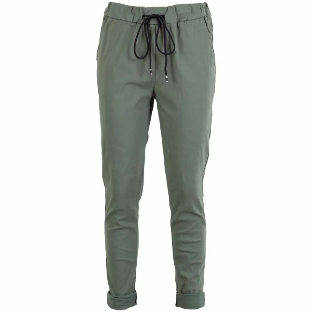 ChaCha dame bukser med stretch. Smarte bukser med masser af stretch. Bukserne har to skrålommer samt elastik og bindebånd i linningen.